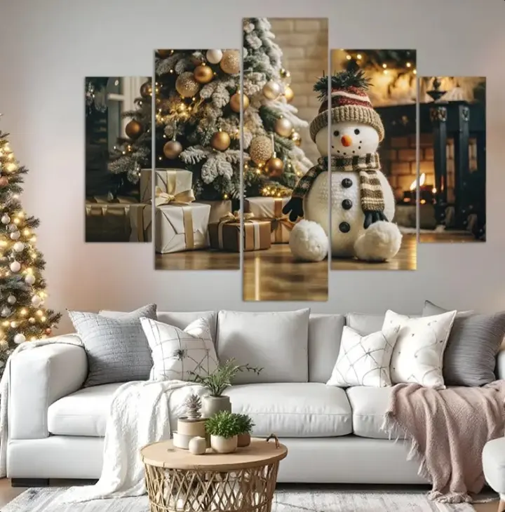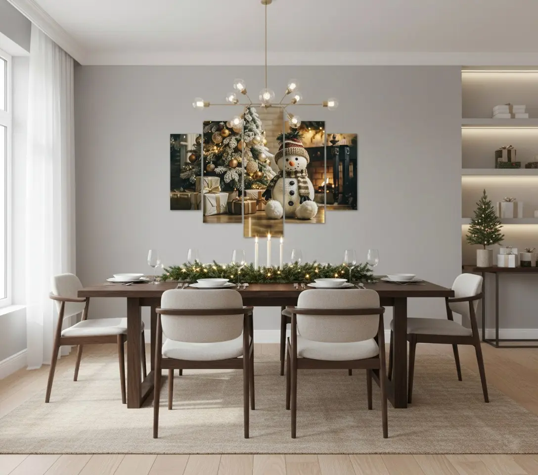 Presentamos la Obra Maestra de la Decoración Navideña: El Cuadro Políptico 5 Paneles Muñeco de Nieve de TiendaTrendco.online. La forma más fácil y elegante de inyectar calidez a tu hogar.