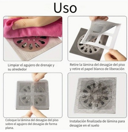 ✨ Adhesión fuerte y segura: Fáciles de instalar. Solo debes despegar el papel protector, pegarlo sobre el desagüe limpio y presionar suavemente. ¡Quedan firmemente adheridos!